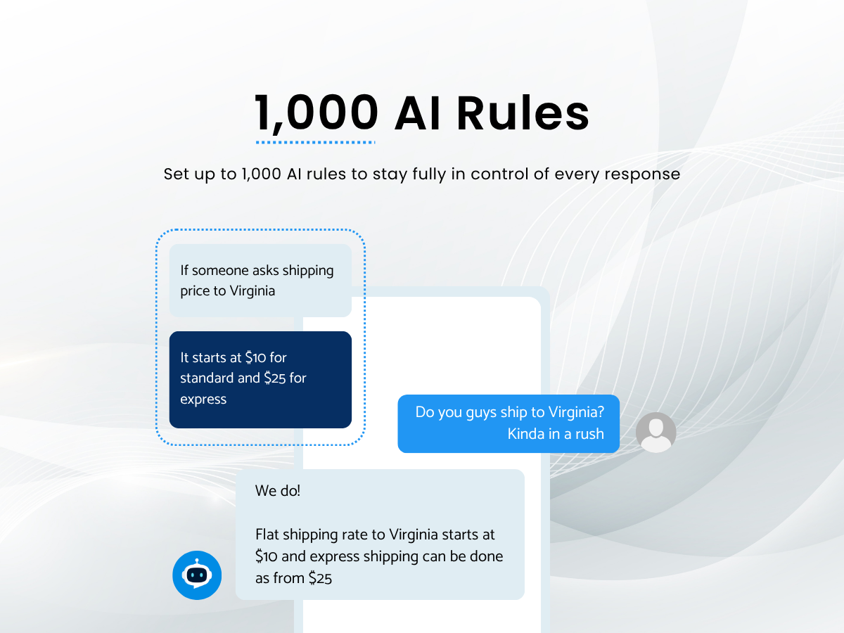 Custom AI Rules, Knowledgebase, Chat Hours, Escalation settings & more for full control over customer interactions
