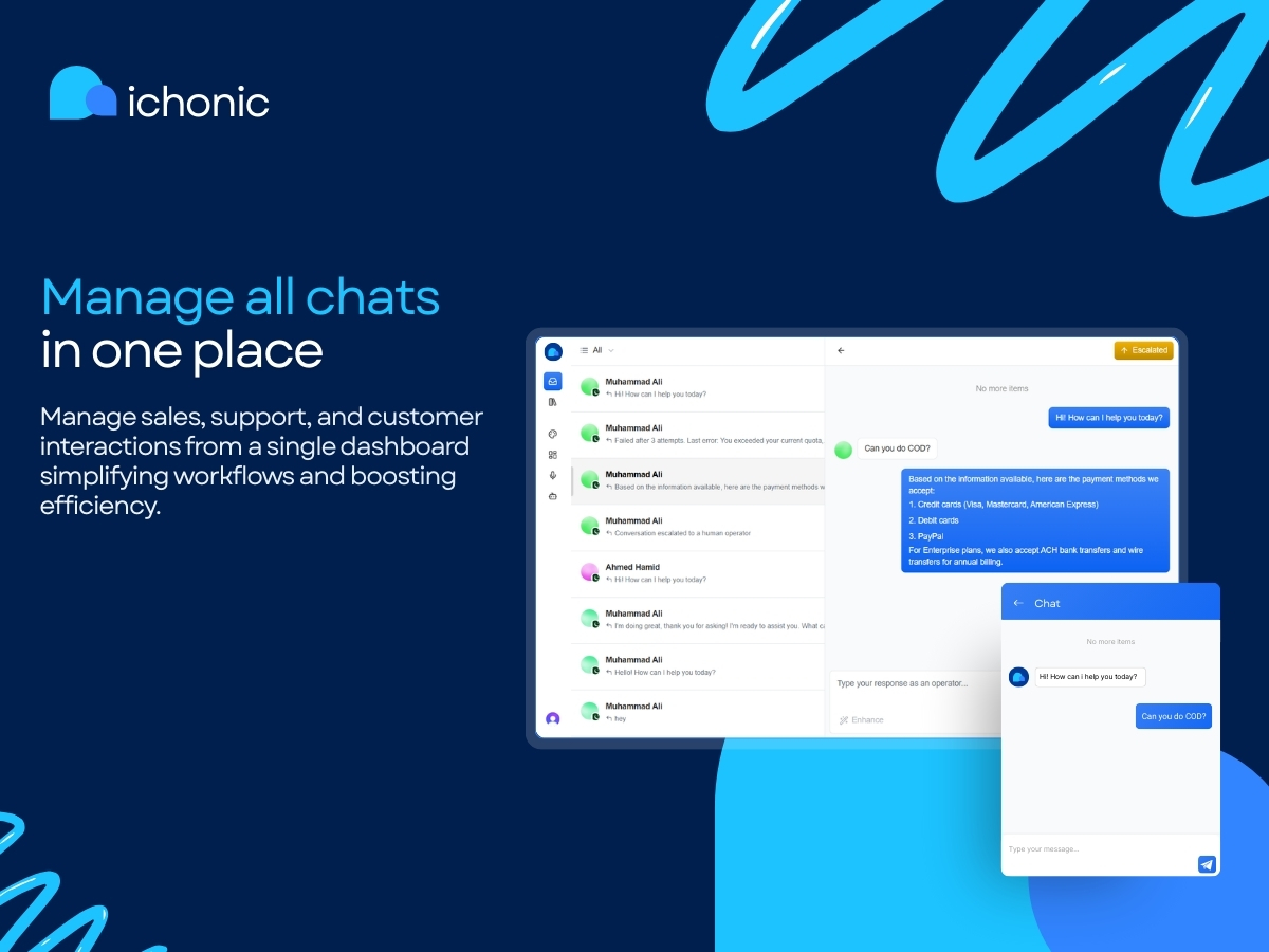Our app combines AI automation, knowledge-base learning, human escalation, voice calling, and multi-agent collaboration into one simple, powerful live chat platform.