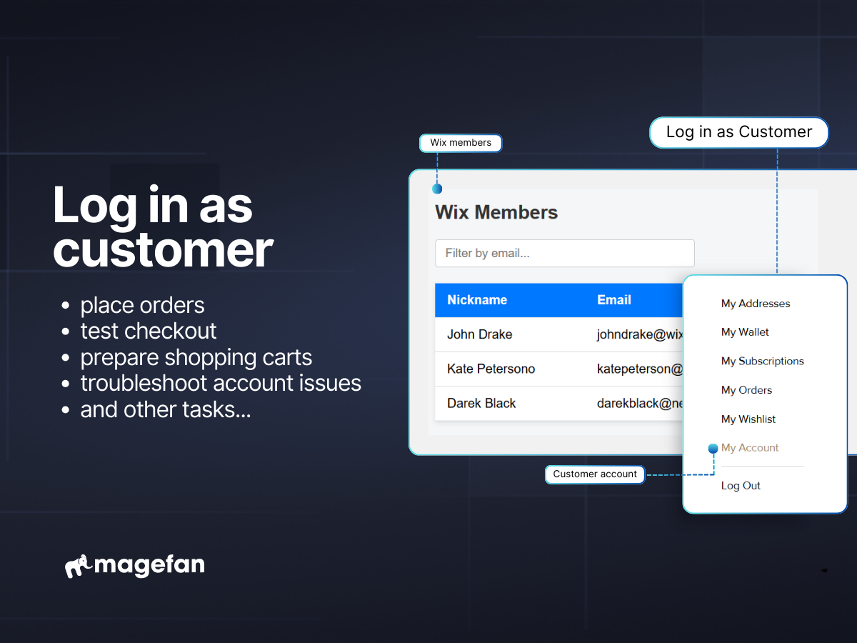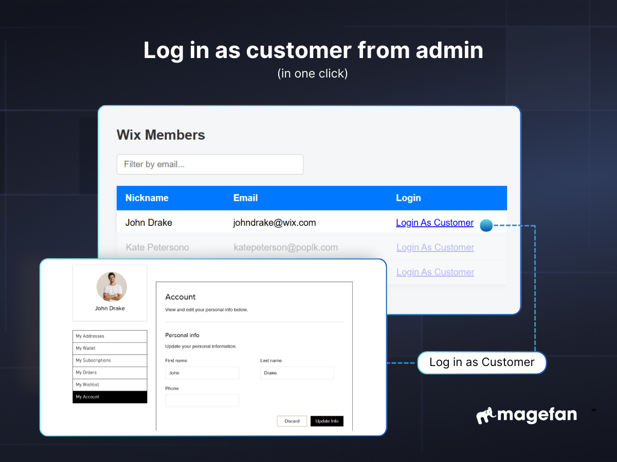 • Log in to customer accounts from the admin in one click